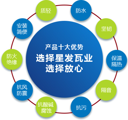 公司主要產品有《星發(fā)牌》合成樹脂瓦、APVC防腐耐候復合瓦、APVC發(fā)泡隔熱瓦、PVC半透明瓦、PVC防腐隔熱瓦、PVC防腐瓦、PVC防腐平板、PVC條紋板和ASA/PVC超耐候復合瓦等產品。產品一經推出,已被廣泛應用于國內各類平改坡項目和大型工業項目,遠銷歐洲、亞洲、美洲和非洲等國外市場,還獲選為廣州亞運會、深圳大運會、四川災后重建等工程項目的應用產品。公司在不斷創新和改革的基礎上,力求以更好的產品、優(yōu)良的服務,用心、專心服務好每一個客戶。